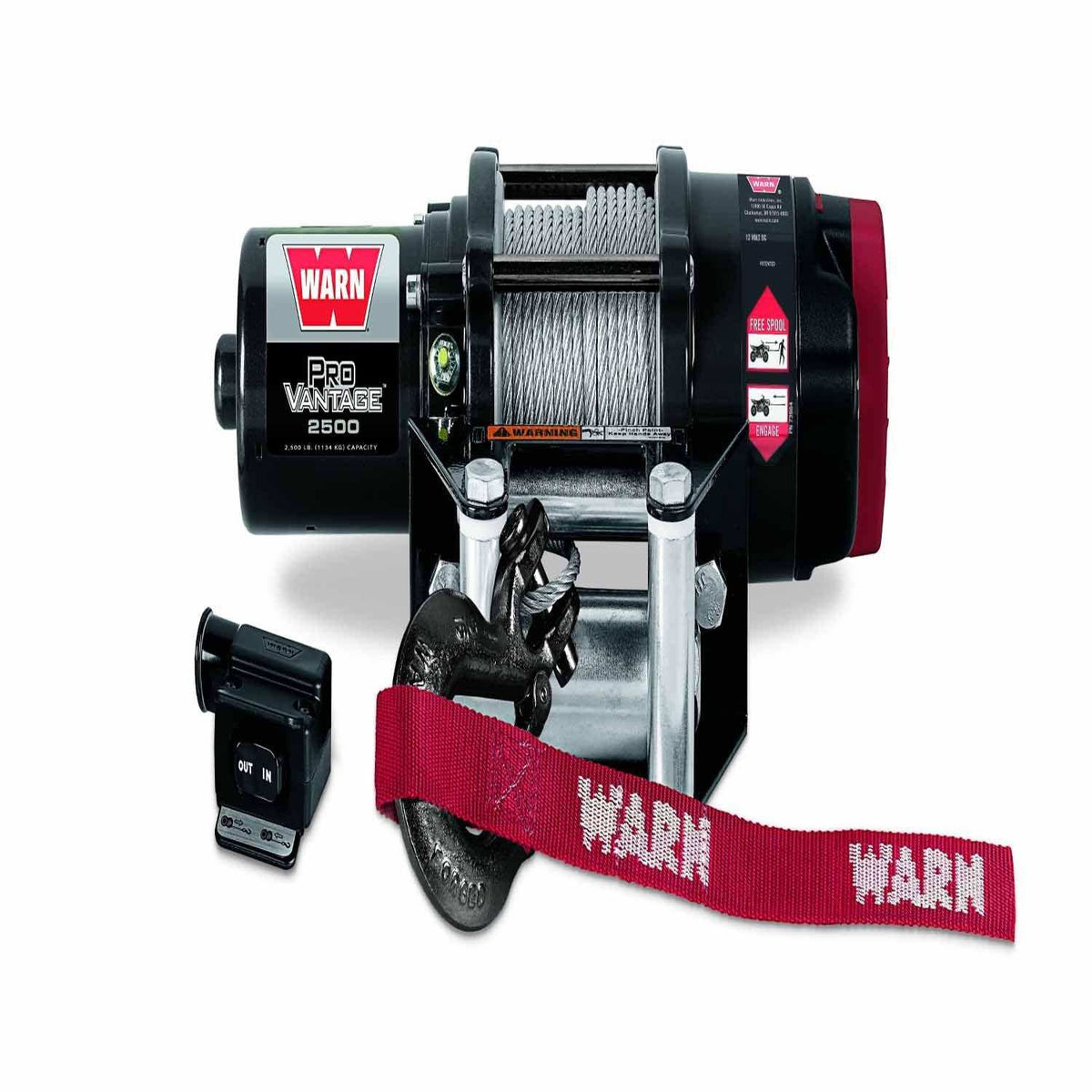 Vehicle Mounted; Large ATVs and Side by Sides; 12 Volt DC Battery; 2500 Pound Line Pull Capacity; 50 Foot Wire Rope; Roller Fairlead; Handle-Bar Mounted Control Switch; Planetary Gear Drive; With Fairlead Mounting Plate