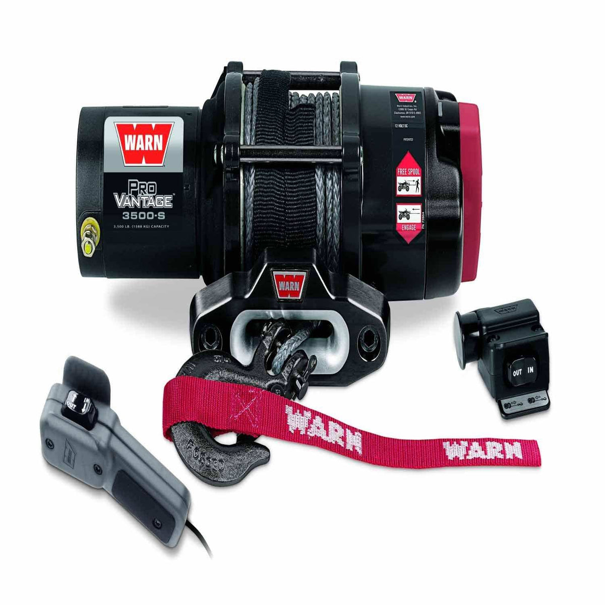 Vehicle Mounted; Large ATVs and Side by Sides; 12 Volt DC Battery; 3500 Pound Line Pull Capacity; 50 Foot Synthetic Rope; Hawse Fairlead; Wired Remote and Handle-Bar Mounted Control Switch; Planetary Gear Drive; With Fairlead Mounting Plate