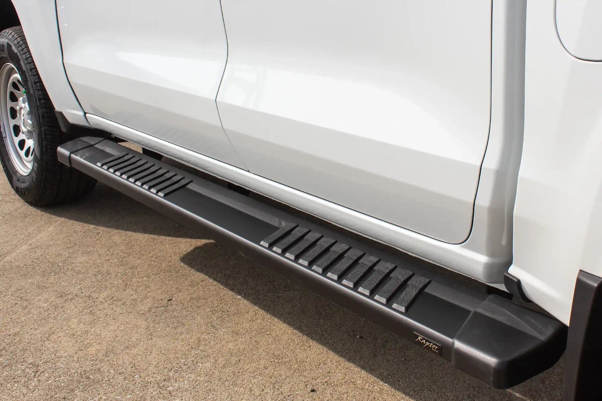 Raptor Series 1701-0342BT - 6 In OEM Style Slide Track Running Boards Black Textured Aluminum 15-24 Chevy Colorado/GMC Canyon Crew Cab