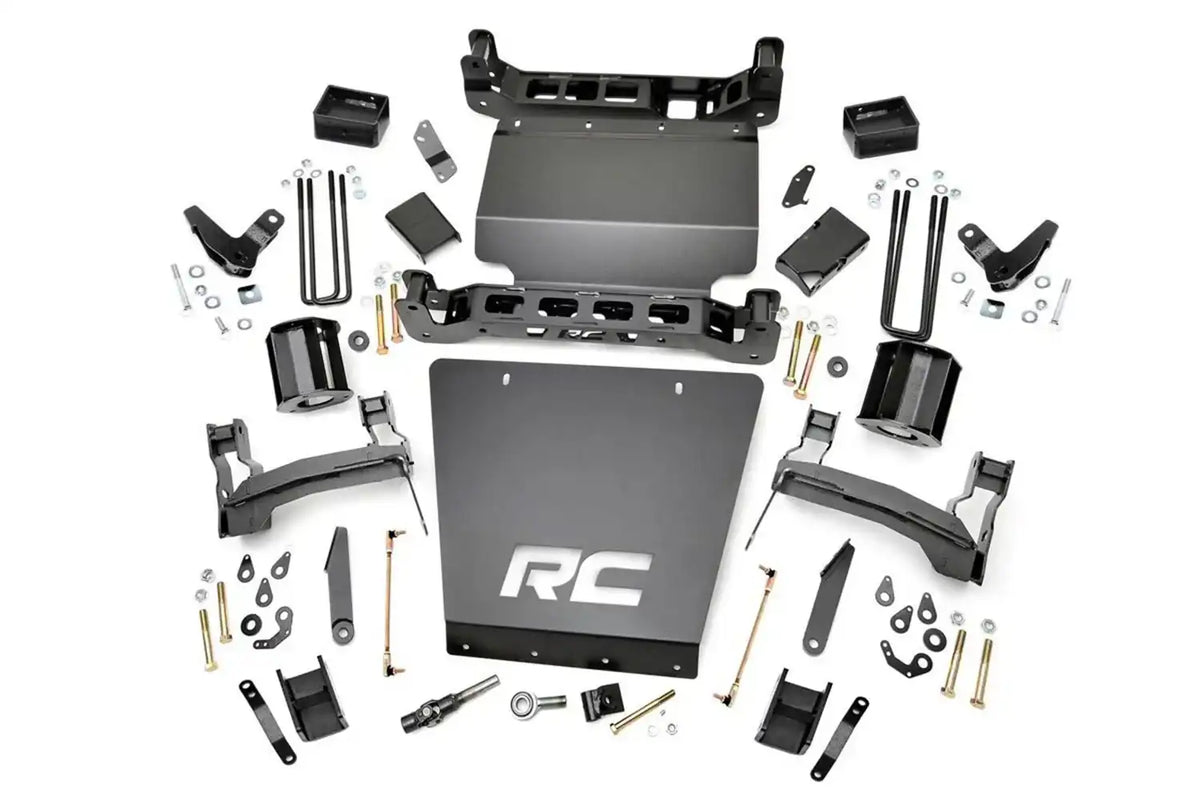 This kit ships with EVERYTHING you need to give your new truck the aggressive stance and capabilities it deserves; stout upper strut spacers, a beefy front and rear skid plate, our heavy duty front and rear crossmembers, and a set of differential and sway-bar drop brackets - all designed by our in-house Research and Development team with 100 percent laser-cut materials for the best possible fit on your vehicle.