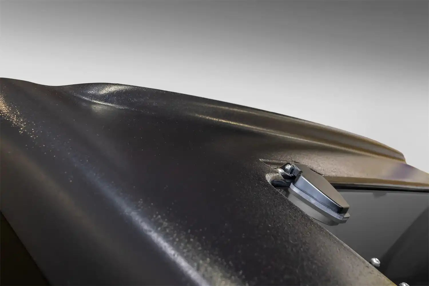 DV8 Off Road Hard Tops are built in the United States and use high quality seals, fiberglass, and advanced aerodynamics to produce the quietest tops on the market. This DV8 top is a 2 piece design so the part over the front driver and passenger lifts off like a Targa top. All tops have carpeted interior and tinted windows. This top is a Fast Back 2-Piece for 4 Door JL Jeep Wrangler Unlimited. Features: Hand laid honeycomb, reinforced fiberglass for added durability, 31 percent Tint, DOT approved glass, Military grade carpeted headliner for increased insulation and noise reduction, UV stable gel coat-Extra thick, Quick release latching system, Improved aerodynamic shape, Rear spoiler lip, Defrost rear windows.