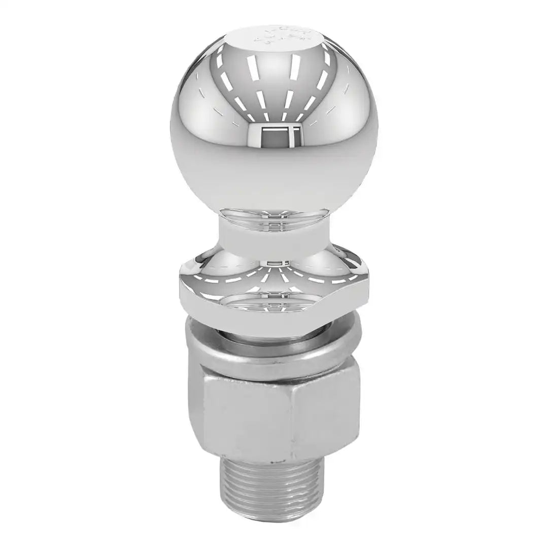 The CURT 2-5/16" trailer ball does not mess around. Simply put, it is a solid piece of towing equipment that makes all others look like they're just spinning their wheels. CURT 2-5/16" trailer balls are made with expert engineering to be packed with strength and durable enough to withstand the harsh wear of heavy-duty towing. Anything your class 5 trailer hitch and class 5 ball mount can handle, CURT has a 2-5/16" trailer ball to match. These tow balls are perfect for towing all types of heavy receiver-style trailers, including dump trailers, toy haulers, farm trailers, chopper boxes, dual-axle utility trailers, deluxe RVs, small yachts and more (NOTE: Never exceed the lowest weight capacity of any towing component; i.e. the vehicle, hitch, trailer, etc).This 2-5/16" trailer ball features a ball capacity of 15,000 lbs. It features a 1-1/4" shank diameter, a 2-5/8" shank length, 0" of rise and a nickel-chrome finish to protect against the elements. To give you the power you need to tow with confidence, CURT 2-5/16" trailer hitch balls are thoroughly tested for safety and meet U.S. VESC specifications.
