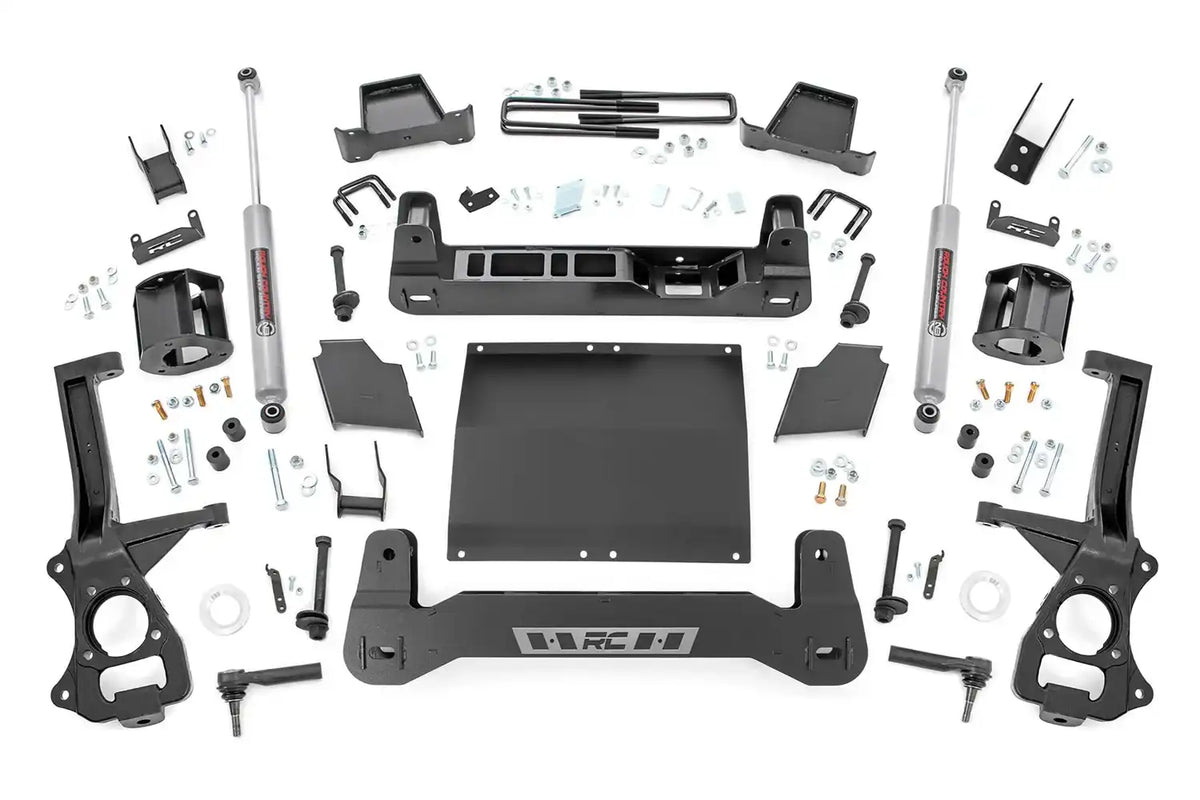 Rough Country's 6in Suspension lift retains the stock track width, allowing for up to a 10in wide wheel with 4.5in backspacing. Each kit includes front and rear crossmembers and a skid plate for enhanced chassis strength as well as cast steel knuckles for incredible durability and performance. Includes Rough Country's Lifetime Replacement Guarantee!