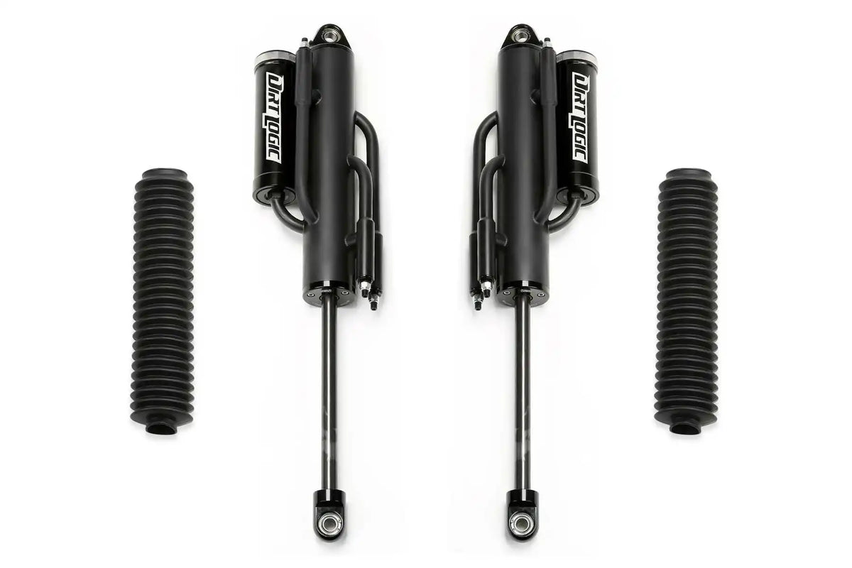 2010-14 Ford F150 Raptor 4WD - Fits 0-2in Lifts. The factory rear Raptor shocks have something less than desired when it comes to damping in aggressive offroad conditions. Dirt Logic 3.0 Bypass shocks will improve the ride quality of the rear suspension for aggressive offroad driving along with a compliant highway ride. These Raptor Bypass shocks feature a 3 tube construction that provides two adjustments for compression and one for rebound. The tubes have been precisely placed on the body to provide superior damping throughout the travel range. Each Bypass tube adjuster comes preset from hours of testing for the best overall performance. This eliminates the need to spend time adjusting on your first drive. Just bolt them on and go hit the trail. The 2.5 OD piggyback reservoir provides additional cooling to help reduce fade during high speed offroad use. Each bypass tubes and reservoir port are meticulously TIG welded to the 3.0 steel body. The body is then pressure tested, honed and coated with a Cerakote finish in tactical black for extreme durability. This coating provides 120 hour salt spray compared to zinc plated steel shocks only going 48 hour salt spray. NitroSteel 7/8in piston rods are utilized for maximum corrosion resistance. A durable piston rod boot is included to totally protect the rod from sand and rock spray that can cause damage leading to seal failure. High tolerance internal components feature Viton seals and a 2.75in OD billet piston with variable flow bleed ports. It provides a compliant ride at low speed yet be able to handle big impact hits with ease. Completing the blacked out appearance of these Raptor shocks is the polished and black anodized aluminum components. They offset the matte Cerakote finish for a subtle yet bold statement. These Dirt Logic 3.0 Bypass shocks are the pinnacle of shock performance for the most aggressive offroad conditions. Features: 3.0in Black Cerakote Body 120 Hour Salt Spray. 3 Tube design with 2 compression and
