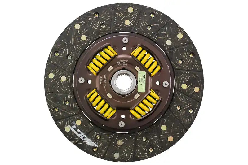 | Description_ASM | 3001605 is a performance street disc and the most popular disc purchased. It features premium organic materials with high copper content for better heat transfer. Performance street discs allow for quicker shifting and smooth engagement. These discs feature a reduced marcel for faster shift action to complement ACT pressure plates. ACT spring-centered assemblies use bushings and cone springs similar to factory clutch discs. This creates frictional dampening, which improves clutch life and reduces noise. Quiet operation with increased strength and reliability. |