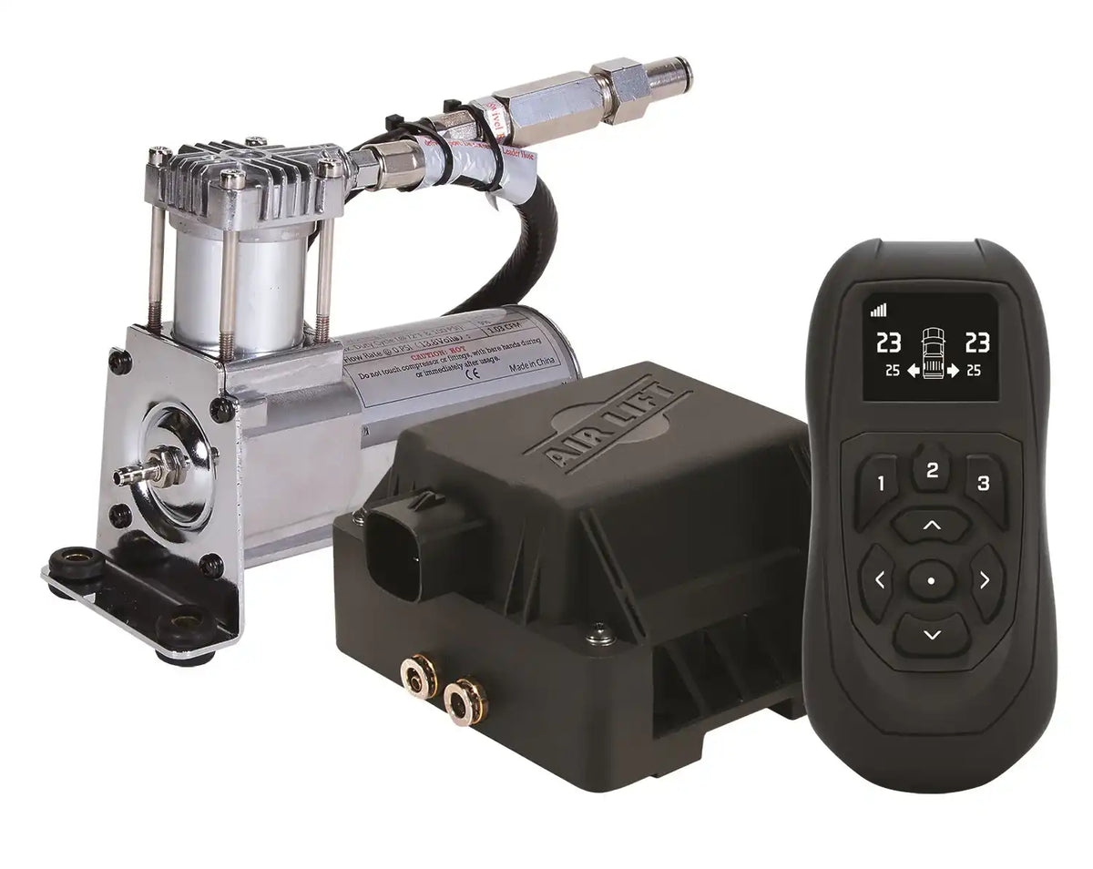 | Description_MKT | Offering easy and convenient air pressure adjustment for any brand of aftermarket air spring, the WirelessAir on-board air compressor system from Air Lift is ideal for the elite air spring user. This dual-path WirelessAir(TM) allows users to inflate or deflate each air spring separately, this allows each air spring to be filled to different air pressures, to better handle uneven or top-heavy loads, all powered by a heavy-duty compressor. This second-generation system offers easy control of your air springs through an upgraded, wireless handheld controller or the new mobile app. Installing the system is simple, with no air line or wiring needing to be routed through the cab of the vehicle. The included wiring harness, installation hardware, and a fully illustrated instruction manual ensure that WirelessAir(TM) will be up and running in no time. WirelessAir(TM) is now available with the EZ Mount system, which packages the manifold and heavy-duty compressor into a factory-assembled and tested bracket, making installation even easier. Backed by Air Lift's two-year limited warranty and 60-day, no-questions-asked, money-back guarantee, WirelessAir(TM) can be purchased with peace of mind. |