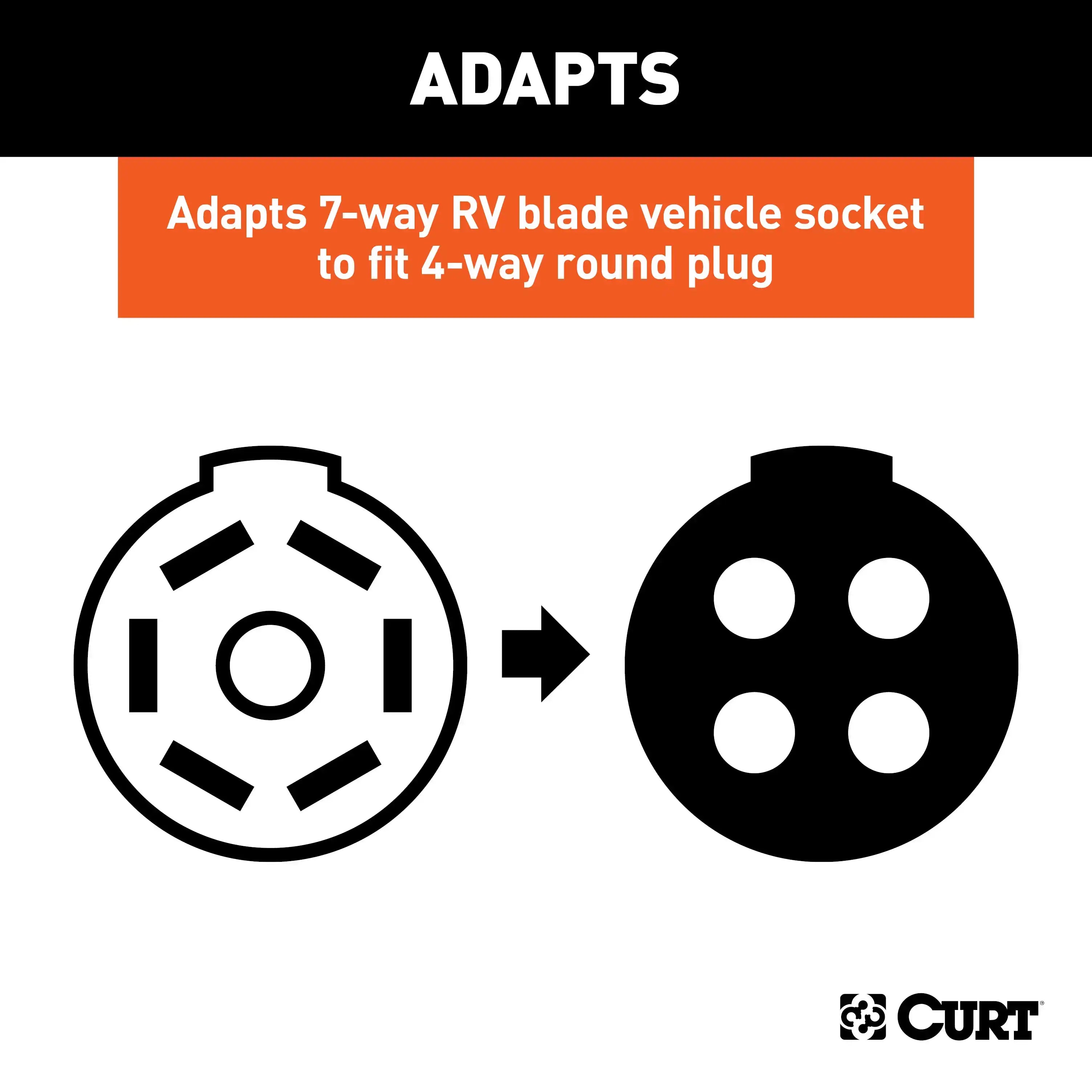 CURT 57285 - 8ft. Dinghy Towing Adapter/Socket (7-Way RV Blade to 4-Way Round Vehicle)