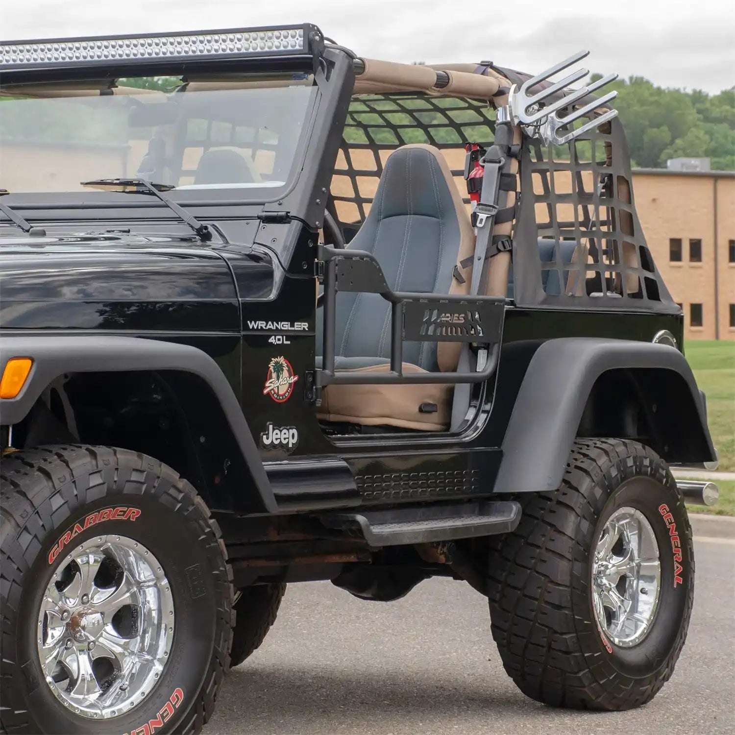 ARIES Jeep tube doors are more than a fancy aftermarket toy for your Wrangler TJ; they are the key to turning your ride into the ultimate off-roading machine. Their open-concept design and aggressive cutout pattern makes them the perfect accessory for the desert baja and the rock climber alike. To keep your Jeep TJ light on its feet over every sand dune, ARIES Jeep tube doors are built to be lightweight while still maintaining superior strength. They are constructed from T6 aluminum alloy, making them strong but far lighter than steel. We also use 100% TIG welds to ensure a solid build and a precise fit on your vehicle. Jeep tube doors are quick to install and easy to remove whenever necessary, using the factory hinge points. They are coated in a durable black powder coat for maximum corrosion resistance (NOTE: Before purchasing ARIES Jeep tube doors, it is recommended that you check local and state laws. Some laws may prohibit the use of this product).