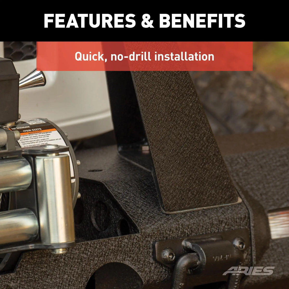 ARIES 2081100 - TrailChaser Black Steel Front Jeep Bumper Angular Brush Guard Only