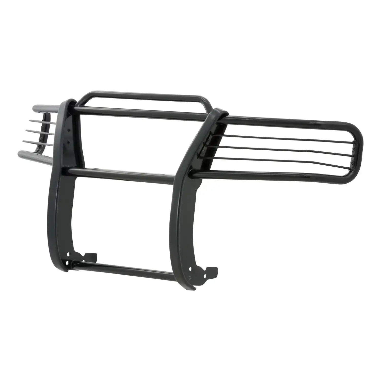 Grille Guard; 1-Piece; Powder Coated; Semi-Gloss Black; Carbon Steel; 1-1/2 Inch Diameter; With Brush Guard; Without Skid Plate; Without Step Plate; With Track Mounting System For Light Mounts.