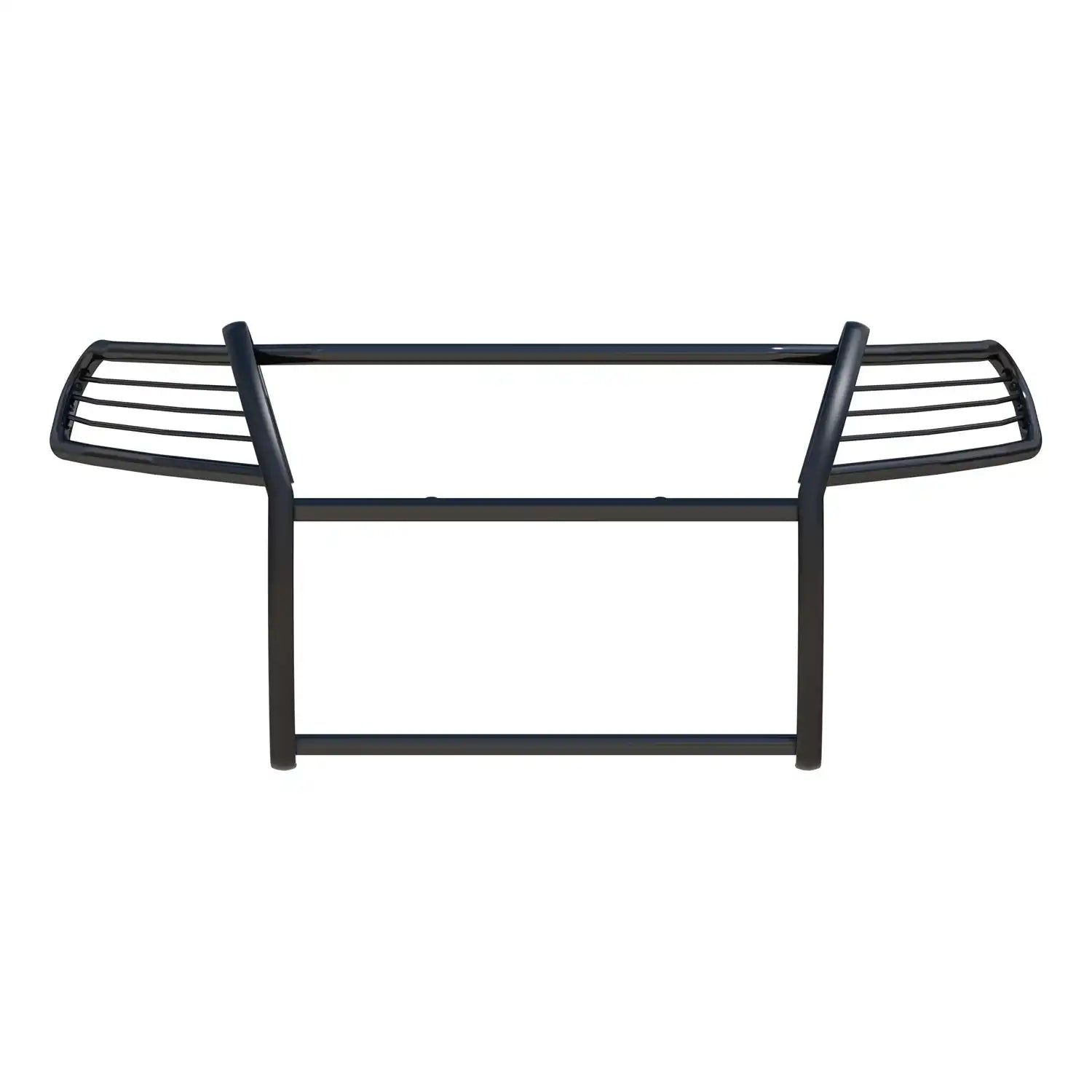 Grille Guard; 1-Piece; Powder Coated; Semi-Gloss Black; Carbon Steel; 1-1/2 Inch Diameter; With Brush Guard; Without Skid Plate; Without Step Plate; With Track Mounting System For Light Mounts