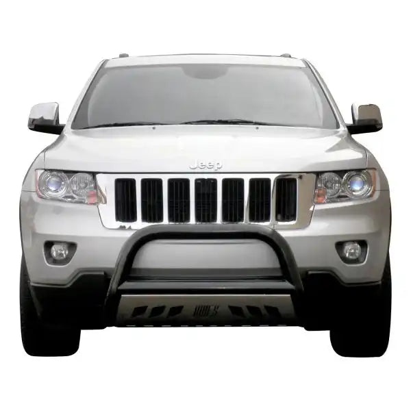 From the cattle rancher on the open range to the industrial man of the asphalt jungle to the jerky-jawing trail hog of the north woods, the ARIES 2-1/2" bull bar is made for those who face the uncertain road without fear. This particular model is constructed from strong carbon steel and finished in a durable E-coat and semi-gloss black powder coat finish to outlast rust and the elements. Other available finishes include high-gloss black stainless steel, polished stainless steel and textured black steel. Customizing the look of your vehicle is simple with the ARIES 2-1/2" bull bar. It is equipped with pre-drilled light mounting holes and a removable skid plate. The center crossbar features two pre-drilled holes that readily accept an LED light bar or two LED work lights. The skid plate is made from 304 stainless steel and has a brushed finish to stop rust and hide scratches and scuffs. It also features an aggressive, ARIES-exclusive cutout pattern and can be removed for a customized look. Each ARIES 2-1/2" bull bar is made a vehicle-specific design, meaning that for each make and model, the bull bar has a custom bend and unique mounting brackets. This allows for the best possible fit on your vehicle and ensures solid attachment. The brackets also use pre-existing factory holes in the vehicle's frame to eliminate drilling, speed up installation and increase rigidity. This bull bar fits select model years of the Jeep Grand Cherokee (see application info to verify fitment).