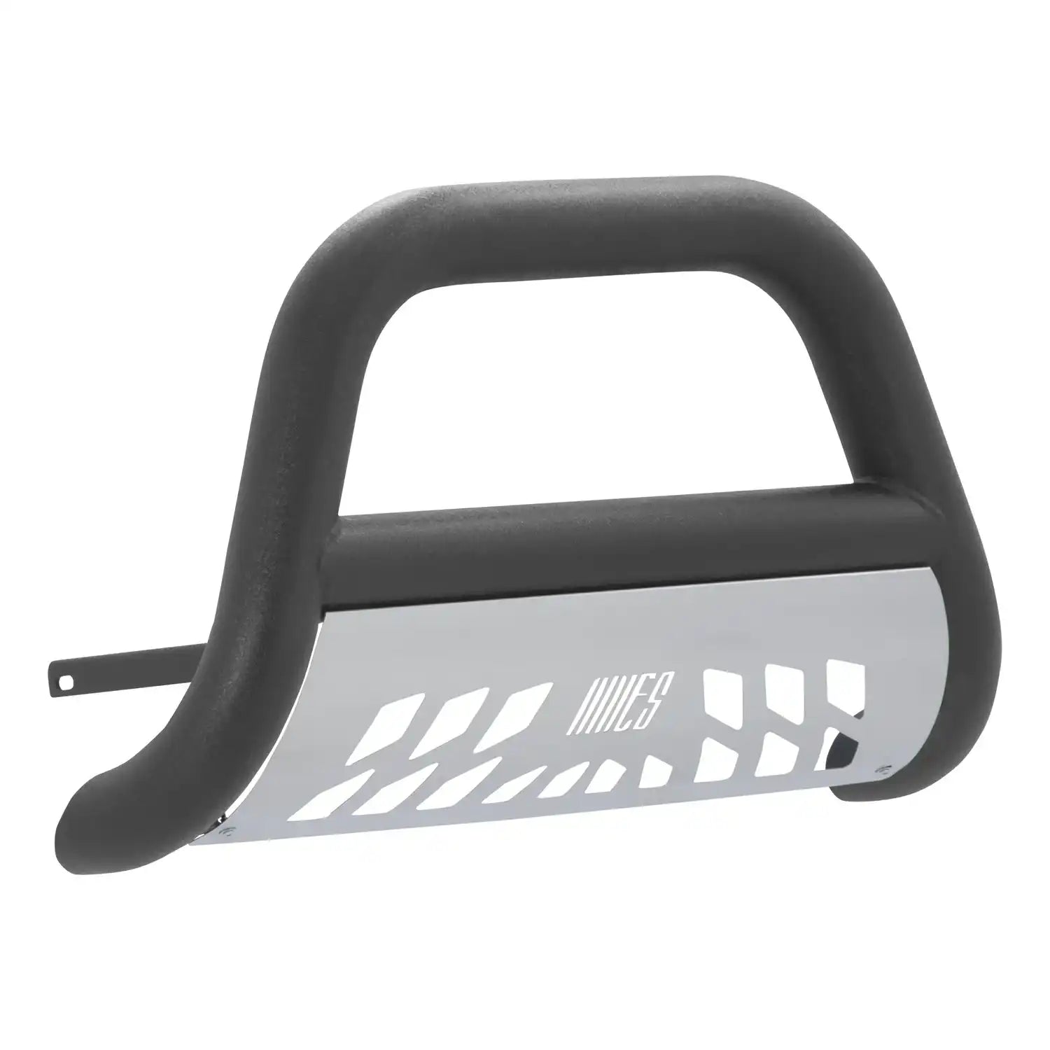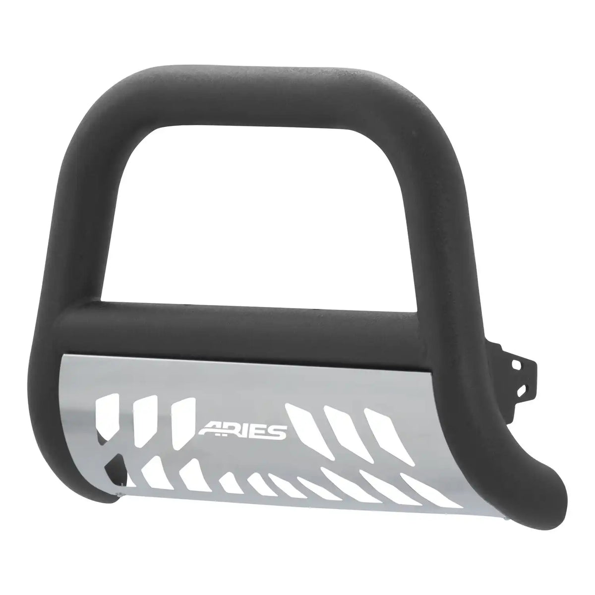 Nothing says bad to the bone like the ARIES Big Horn 4" bull bar. This front-end giant boasts a hefty 4" diameter tube to give your truck a bold look with the toughness to back it up. It is constructed from 304 stainless steel to be strong and highly rust-resistant. 304 stainless has a greater nickel content than many other types of stainless steel, allowing it to better withstand water, road salt and rust and maintain a clean surface. It also comes with a mirror-like polished finish for a bright accent on the front end of your vehicle. This bull bar is also available in a textured black powder-coated aluminum construction to give you the freedom to customize the look of your truck. Each Big Horn bull bar offers easy customization options with its pre-drilled light mounting holes. The crossbar features two mounting points to accept an LED light bar or two LED work lights. The bull bar is also equipped with a brushed stainless steel skid plate. The skid plate is made from highly rust-resistant 304 stainless steel and protects against loose gravel and other small road debris. It comes with an aggressive ARIES-exclusive cutout and can also be removed for a customized look. Made to complement our Big Step side bars, the Big Horn bull bar is perfect for lifted trucks, diesels and full-size pickups. Not only does it provide a bold, aggressive look, but it is also made to fit your vehicle perfectly. Each one features a unique bend that accents the shape and contour of a specific front-end application. Our 4" bull bar is also equipped with vehicle-specific mounting brackets. This allows it to be installed quicker, fit better on the vehicles frame and eliminates the need for drilling. It uses pre-existing factory holes in the frame to cut down on installation time and add rigidity.
