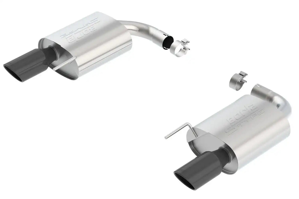| Description_MKT | This system features a black chrome finish on T-304 stainless steel tips. Using Borla Stainless Steel Polish p# 21461 is NOT recommended with these black chrome tips. We suggest cleaning the tips with hot water and a microfiber cloth. Borla Cat-Back and Axle-Back exhaust systems feature patented straight-through and multi-core technology designed to unleash hidden horsepower. Increased exhaust velocity adds power, driving excitement, fuel economy, and the distinctive Borla Sound of Power respected by motoring enthusiasts everywhere. Each system is built from premium T-304 stainless steel, superior to T-400 series knockoffs (such as 409), to give you the absolute best in performance and durability. Ultra-smooth mandrel bends ensure maximum flow & power, and precision computer-controlled CNC manufacturing ensures an accurate fit. Best of all, Borla stands behind every system with a Million-Mile Warranty. Just what you'd expect from the world's most experienced (and most winning) exhaust brand. |