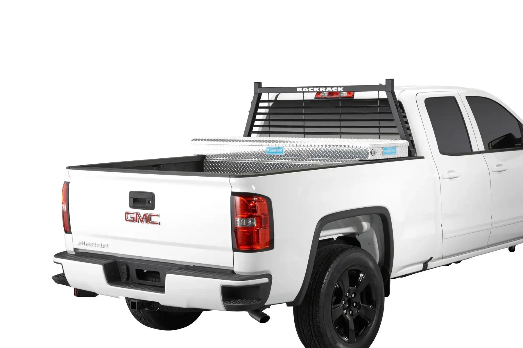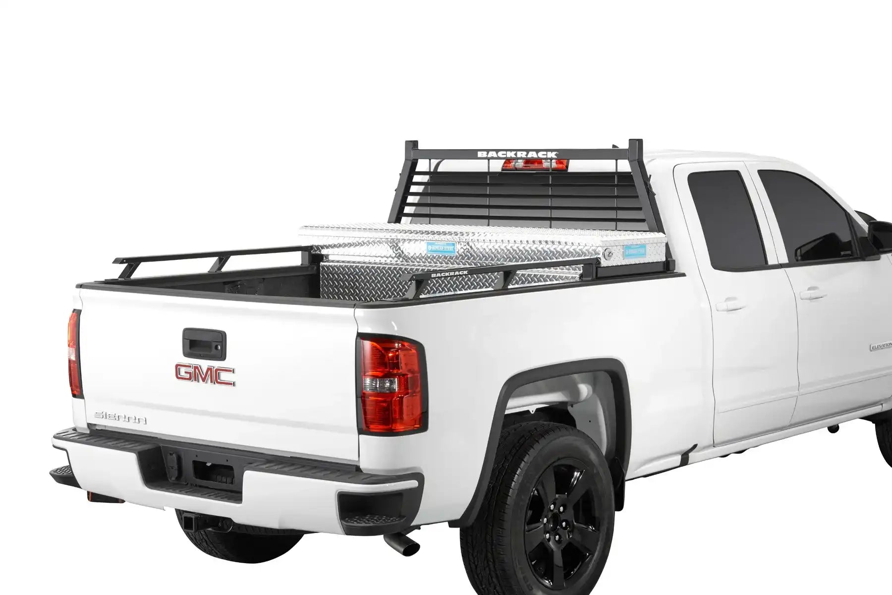 BACKRACK™'s Standard and Toolbox Hardware Kits allow you to secure your Cab Guard to your truck without having to drill holes on most late model applications. Our new Low Profile Drill Hardware allows your Toolbox to sit flush with the truck bed but requires you to drill two holes per side through the bed rail.