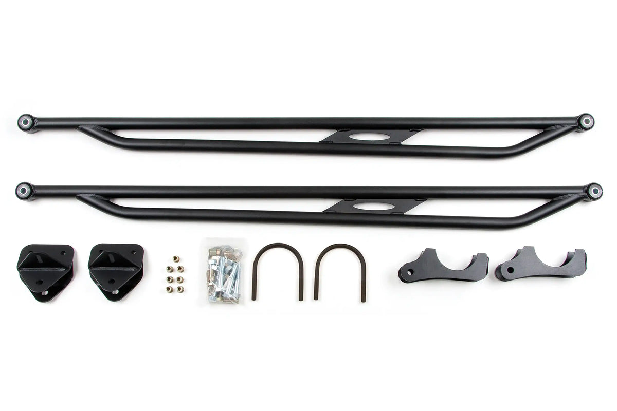 Improve traction on your 2003-2013 Ram 2500 or 2003-2018 Ram 3500 4WD (with 4 inch diameter axle tube) with a BDS Fixed length tubular traction bars. Fabricated from 1.25-inch OD x 1/8-inch wall steel tubing with durometer specific polyurethane bushings on each end. BDS traction bars reduce rear pinion angle change commonly referred to as axle wrap during acceleration with these BDS heavy-duty traction bars. Tubular design for good looks as well as serious axle control.