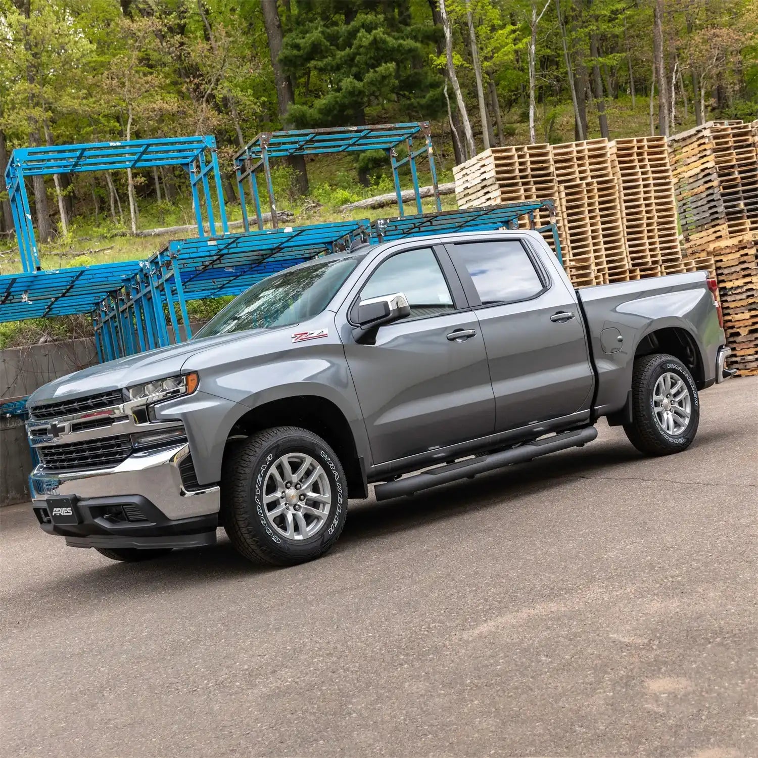 ARIES AL234053 - Big Step 4 Black Aluminum Round Side Bars, Select Silverado, Sierra Crew