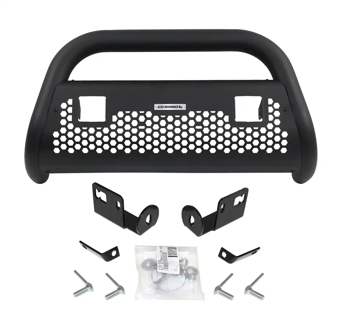 | Description_MKT | Go Rhino's RC2 LR Bull Bars offer updated styling and the ability to combine today’s popular LED lights with front-end protection. The 3" diameter tubular steel frame features a galvanized steel skid plate with a stylish hexagonal cut out pattern. Different styles are available with light mounts for one 20" single row light bar, two 3" cube lights or four 3" cube lights. In addition, all RC2 LR Bull Bars have pre-drilled light mount holes across the center crossmember. The RC2 LR is available as a standalone; as a kit that includes vehicle-specific mounting brackets; or as a kit that includes both mounting brackets and LED lights. Installation is easy with no drilling required. RC2 LR Bull Bars come with a Limited Lifetime warranty on materials and construction and a 5 year warranty on the Textured Black Finish. |