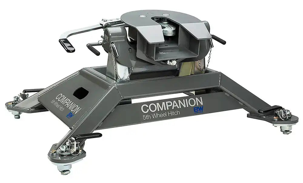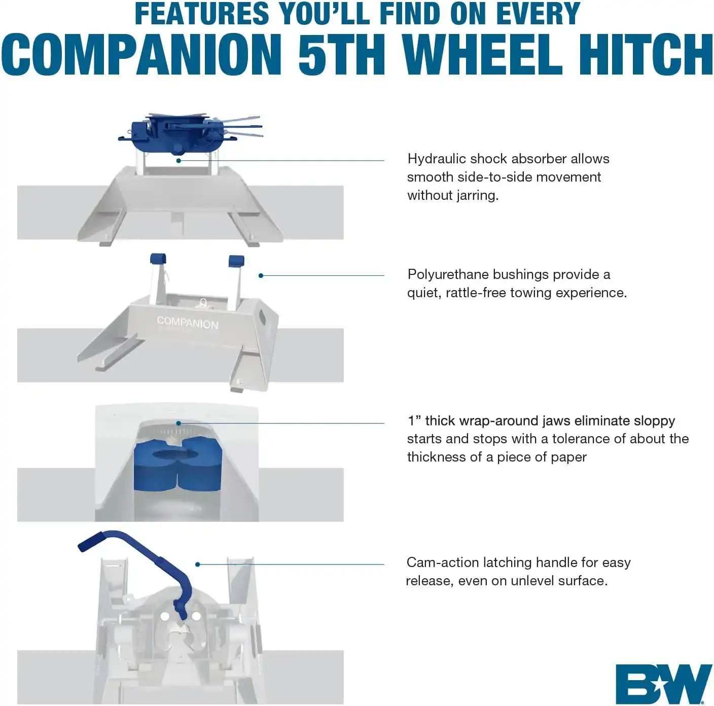 Fifth Wheel Trailer Hitch Companion Use With RAM Factory Pucks 25000 Pound Weight Carrying Capacity/ 6250 Pound Trailer Tongue Weight Fixed Vertical Adjustment From 17 Inch to 19 Inch Front to Back and Side to Side Pivot.