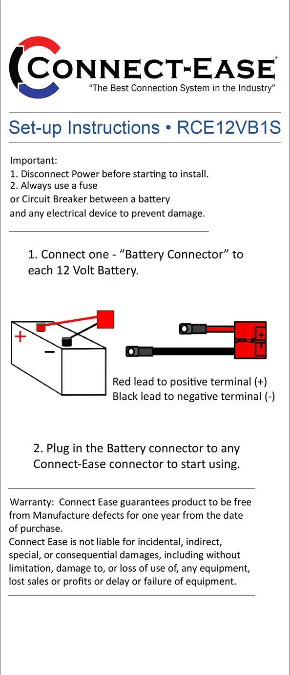 CONNECT EASE RCE12VB1S 12 VOLT BATTERY CONNECTOR