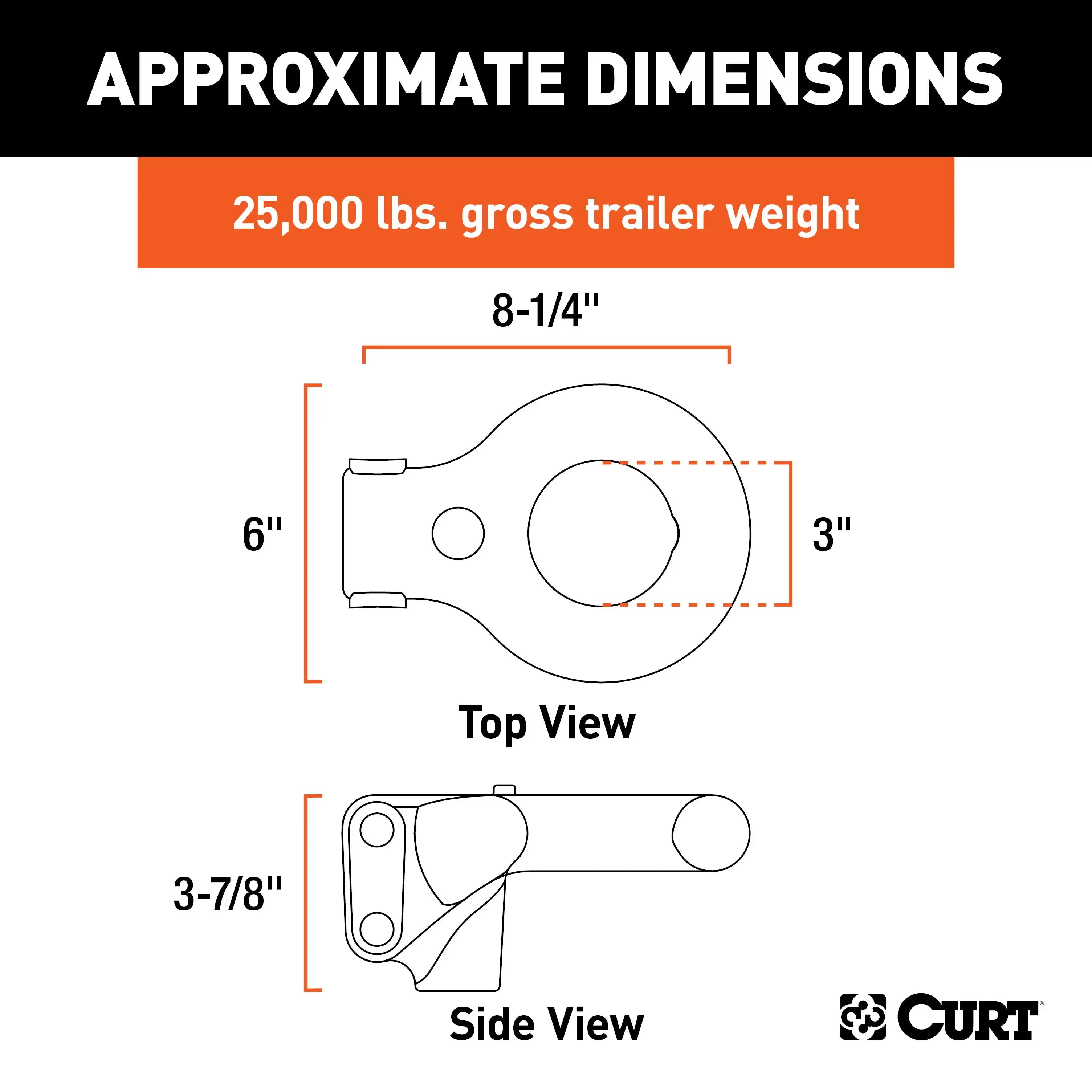 CURT 48625 SecureLatch Channel-Style Lunette Ring, 25,000 Pounds, 3-Inch ID