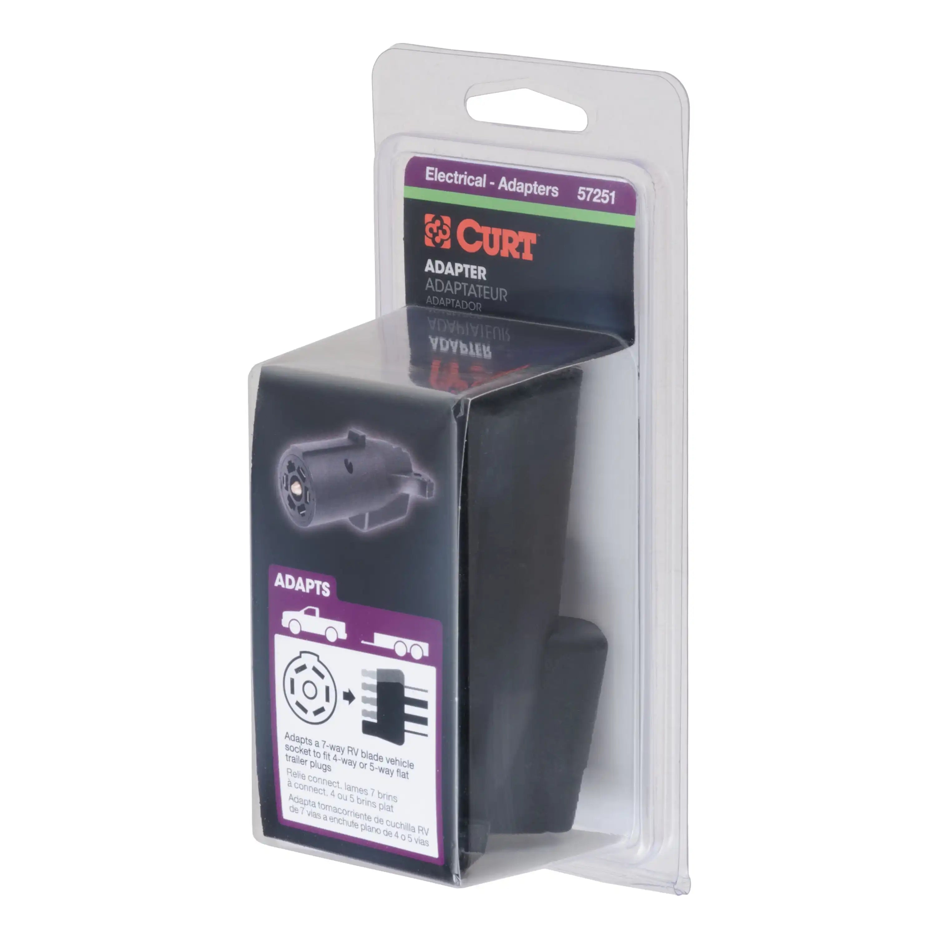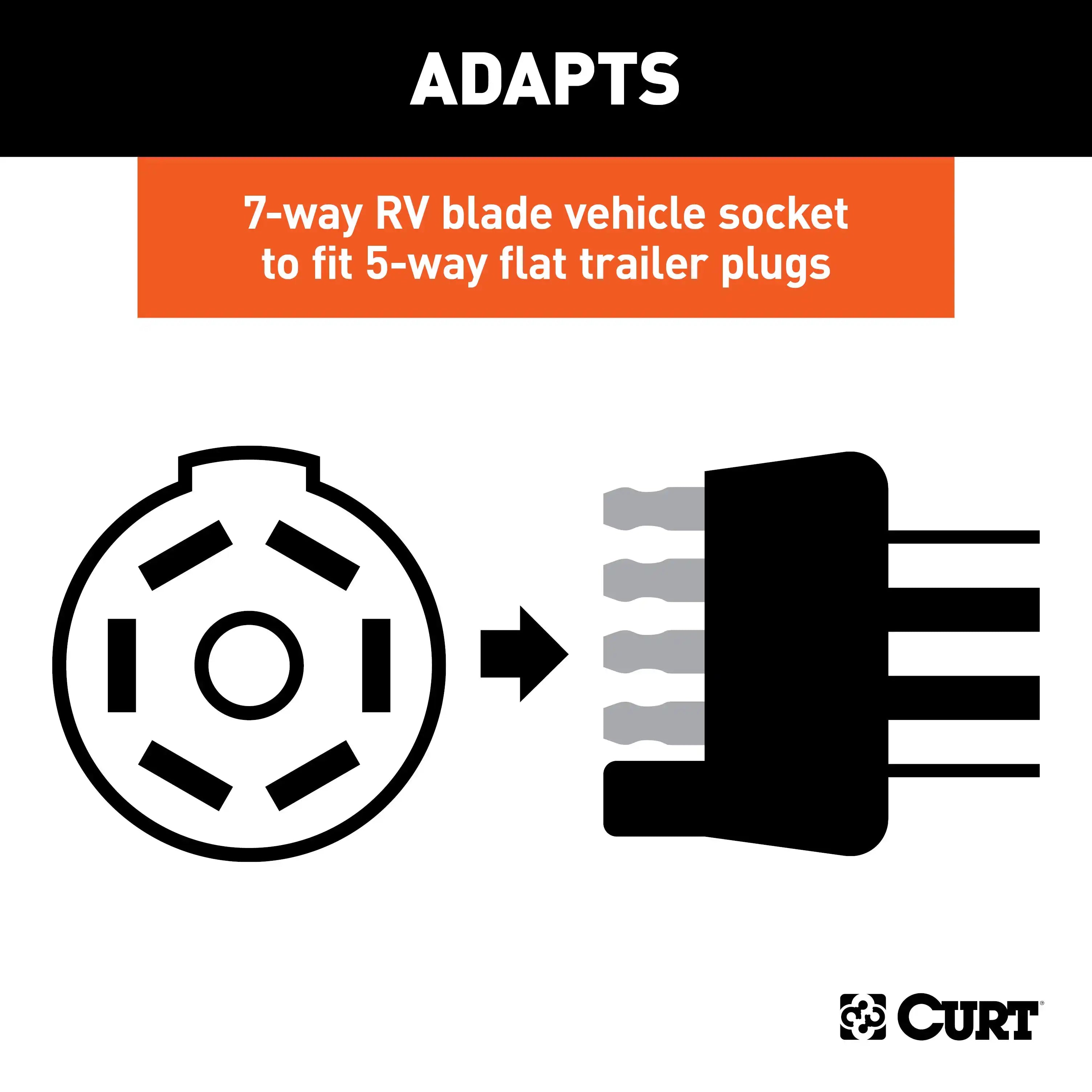 CURT 57251 - 7-Way RV Blade Vehicle-Side to 5-Way Flat Trailer Wiring Adapter