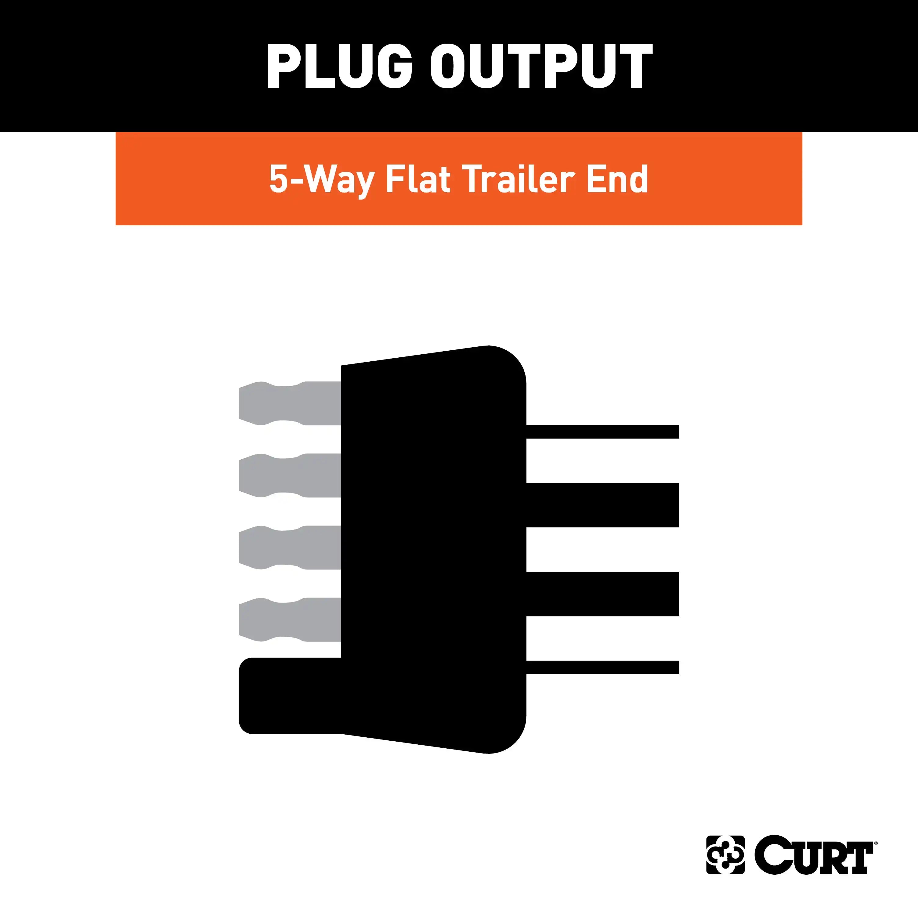 Like trailer hitches and ball mounts, electrical connectors range all over the board in shape, size and capability, but no matter what your trailer's electrical functions are, you need a solid connection to keep the power flowing and ensure safety on the road. CURT electrical connectors are designed and manufactured to give you a reliable connection every time you plug in your trailer. This 5-way flat connector is designed to supply power for tail lights, turn signals, reverse lights and brake lights, as well as a ground connection. It features durable rubber-molded construction and is made with 48" of standard color-coded, bonded wire to easily splice into your trailer's wiring system. This 5-way flat connector is a male-end plug, specifically designed for the trailer side of the connection. 5-way flat connectors are commonly used on boat trailers with surge brakes.