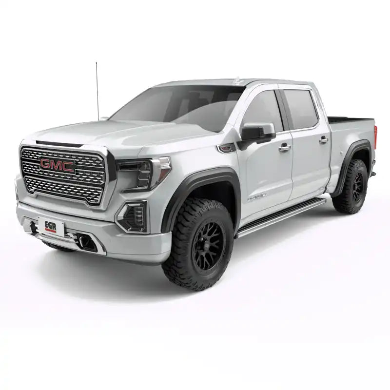 EGR Rugged Look Fender Flares features EGR's OEM grade quality, no drill installation process. They are the perfect DIY upgrade for your vehicle. The UV protected, lightly textured finish is easy to clean and fade resistant. EGR Fender Flares can also be painted to match your vehicle. Increase tire coverage of your fenders by up to 2 inches. Limited lifetime warranty. FRONT" REAR SET.