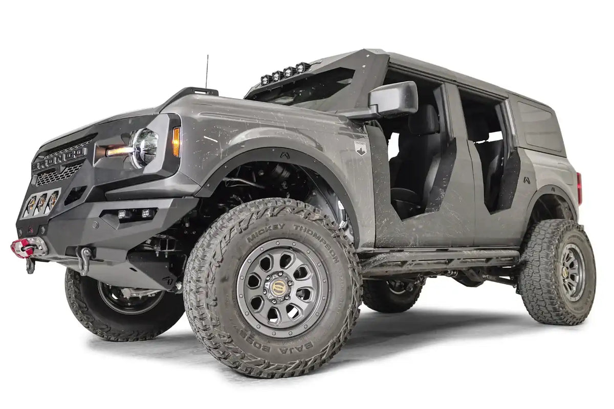 | Description_MKT | Enjoy the open air feeling when out on the trail or the streets during those summer days with the all new Fab Fours' Ford Bronco Trail Doors. Building on our reputation for the highest quality and design in the truck market, the Fab Fours' Ford Bronco Trail Doors focuses on strength and durability. Made from 12 gauge & 3/16th-inch US Steel and finished in our 2 stage matte black powder coat. These are the doors you've been waiting for! Fab Fours - Made in the USA! |