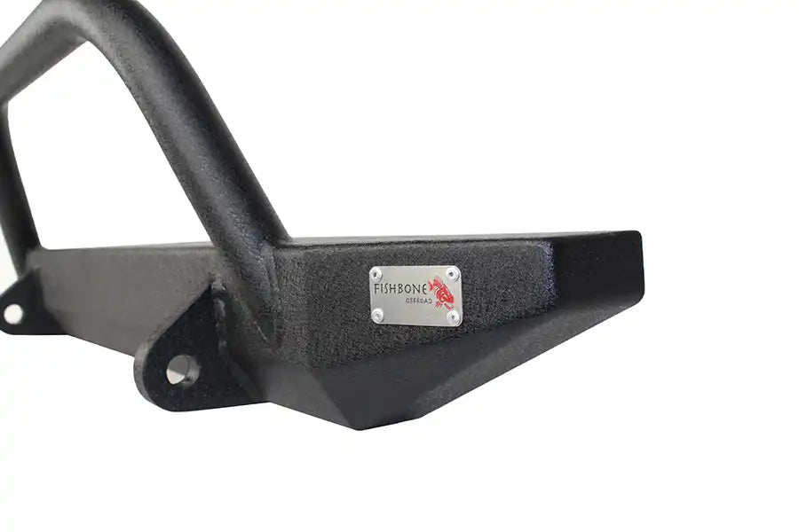 Protect the front of your 1997 to 2006 Wrangler with the Fishbone Offroad Piranha Front Bumper with Winch Guard. The bumper is built using laser cut 3/16 inch steel and coated in a textured black powder coat. The Raised Winch Guard is made from 1-3/4 inch .120 wall tubing. The bumper includes a pair of D-rings so you are trail ready out of the box. Please note that the winch plate is sold separately (part FB21052)