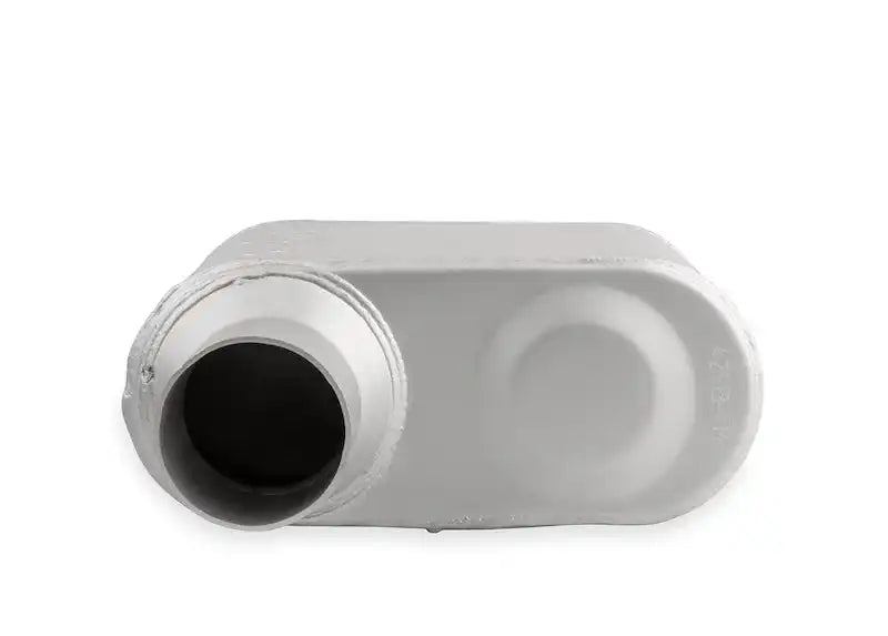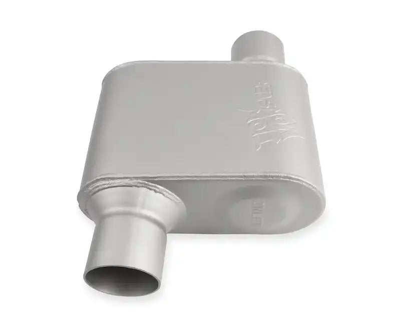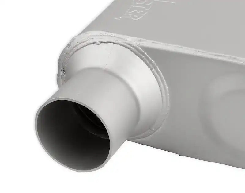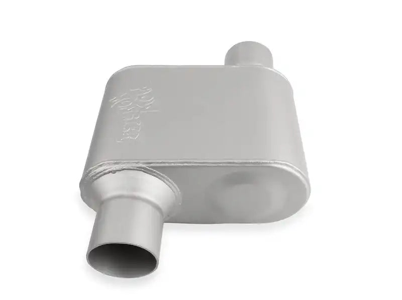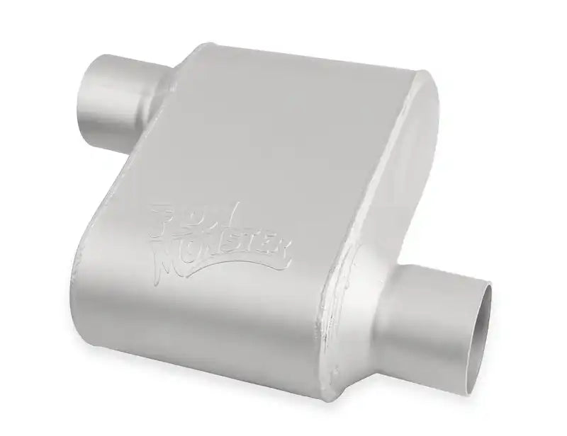 Exhaust Muffler FlowMonster 1-Chamber Muffler Aluminized Steel Single 2-1/2 Inch Offset Inlet Single 2-1/2 Inch Offset Outlet 6-1/2 Inch Body/ 13-1/2 Inch Overall Length