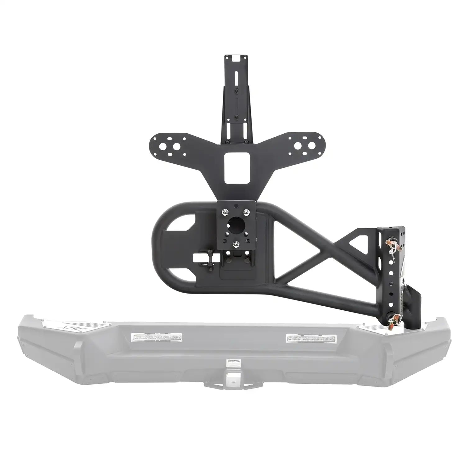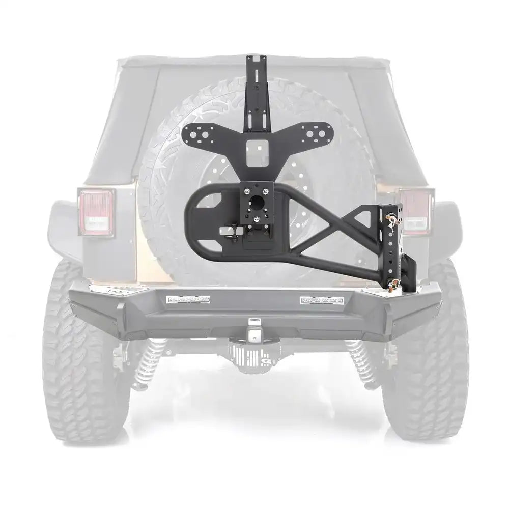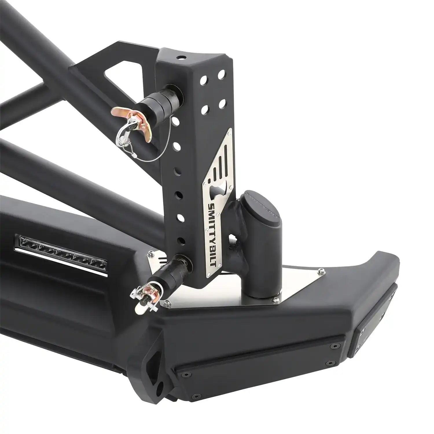 Add A Tire Carrier To Your New Smittybilt Gen2 XRC/SRC Bumper To Get Bigger Spare Tires On Your Jeep. This New Tire Carrier Design Bolts Directly To The New XRC/SRC Gen2 Bumpers, And Includes Roto Pax And Cb Antenna Mounts.