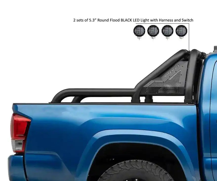 Black Horse Off Road Gladiator Roll Bar Kit Black Steel Modular 2 sets of 5.3" Round Flood Black LED Light With Harness and Switch