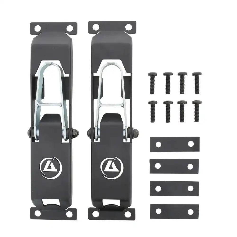 THE NEW SMITTYBILT ATLAS DOOR STEPS COMBINE SAFETY, FUNCTIONALITY AND DURABILTY AS A SUREFOOTED SOLUTION TO OFFER EAST ACCESS TO JEEP ROOF RACKS AND MORE. SMITTYBIT ATLAS DOOR STEPS SUPPORT A 350 LB LIMIT MAKING IT A BREEZE TO SETUP A ROOF TOP TENT, ACCESSING ROOFTOP CARGO AND MANY OTHER THINGS.