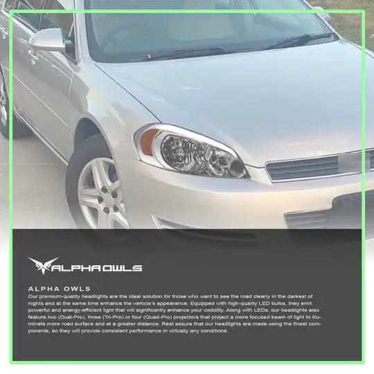 Alpha Owls 2006-2013 Chevy Impala LM Series Headlights (Crystal Headlights Chrome housing w/ LumenX Light Bar).