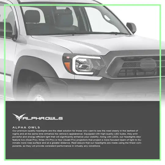 Alpha Owls 2012-2015 Toyota Tacoma LM Series Headlights (Crystal Headlights Black housing w/ LumenX Light Bar).