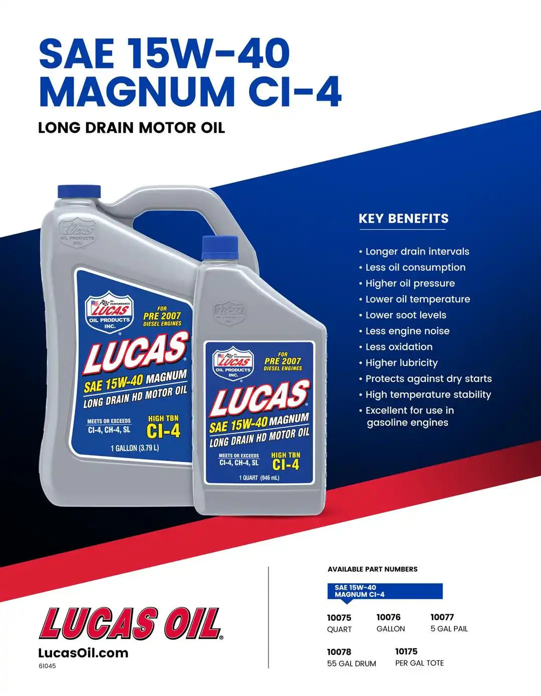 LUCAS OIL 10076 9181386 SAE 15W-40 MAGNUM