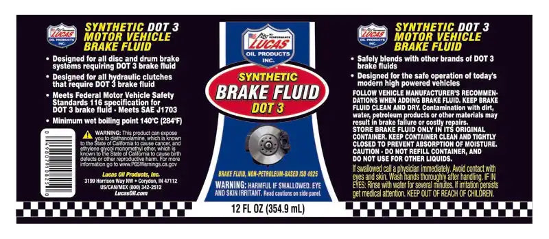 LUCAS OIL 10825 DOT 3 BRAKE FLUID 12OZ