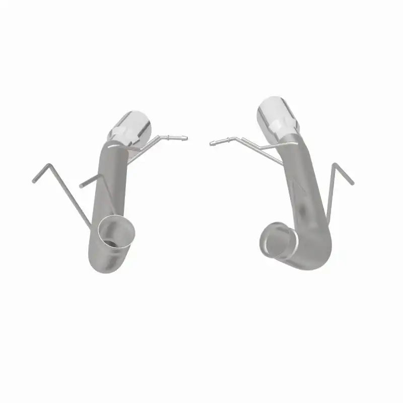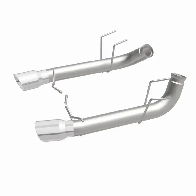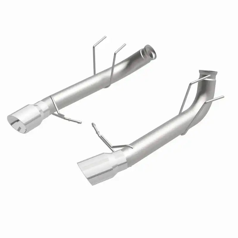 The MagnaFlow Ford Mustang Race Series 15152 doesn*t leave any performance on the table with a race-ready, light weight, dyno-proven design ready to help your 5.0L 2013-2014 Ford Mustang take on any pretenders, whether on the track or the street. Exhaust kit 15152 is engineered to produce our powerful, resonant signature exhaust note at VeryAggressive exterior and Aggressive interior sound levels with an axle-back layout that replaces your vehicle*s exhaust components from near the rear axle on back. Please check to ensure compliance with local noise regulations. This Ford Mustang exhaust kit features fast-flowing mandrel bent 3in. diameter main piping that ends in a Dual Split Rear exit with 4in. Polished Welded-Double Wall-Angle Cut-Folded Edge tips. Extensive 3D scanning during development and the use of advanced CNC precision robotic manufacturing techniques ensures that 15152*s direct-fit design fits so perfectly that you can easily install the system yourself. The durable, corrosion resistant stainless steel construction of exhaust system 15152 is backed by MagnaFlow*s limited lifetime warranty.