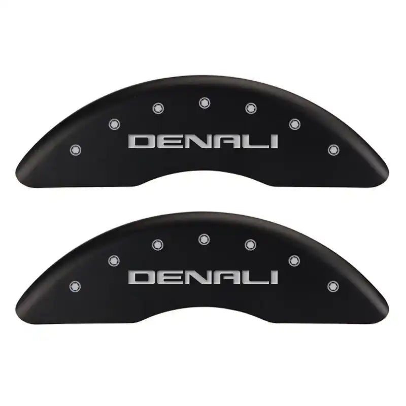Set of 4 caliper covers, Engraved Front and Rear: Denali, Red powder coat finish, silver characters.