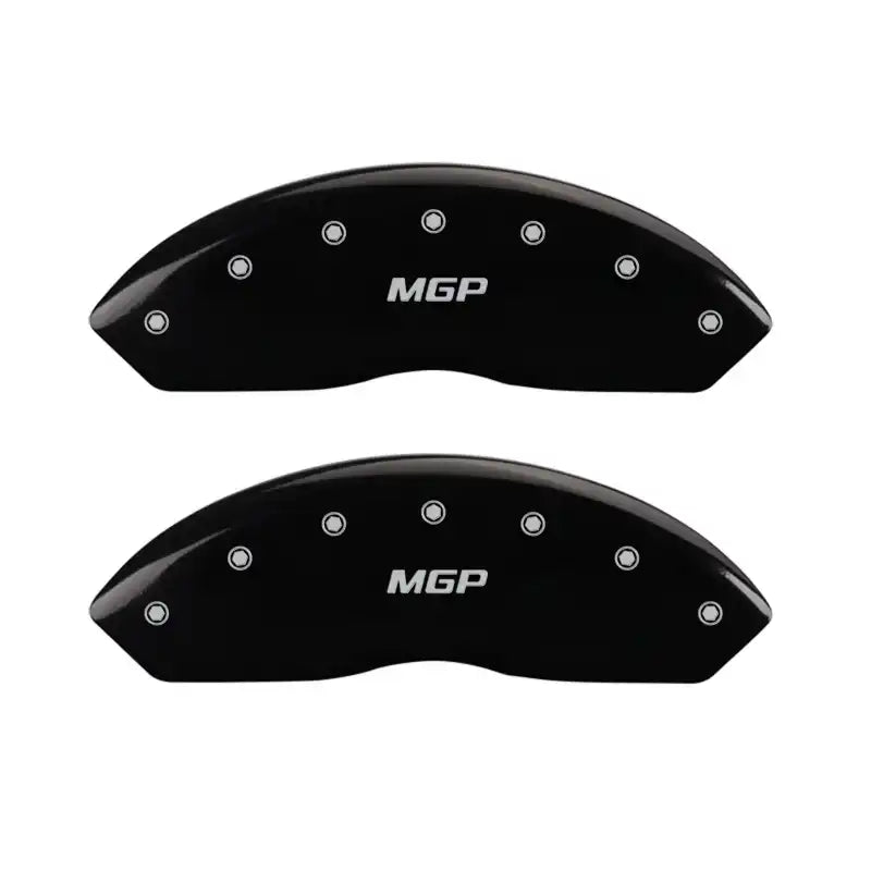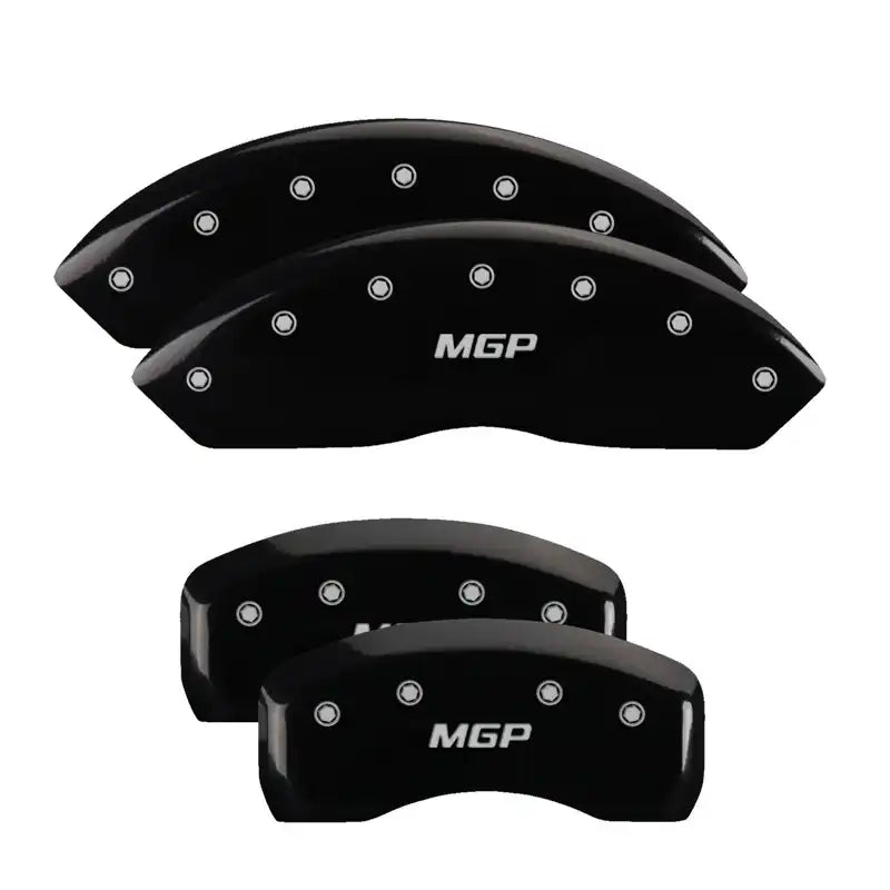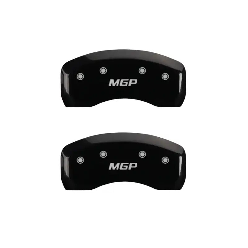 Set of 4 caliper covers, Engraved Front and Rear: MGP, Black powder coat finish, silver characters.
