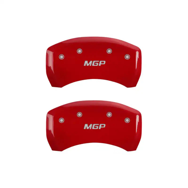 Set of 4 caliper covers, Engraved Front and Rear: MGP, Red powder coat finish, silver characters.