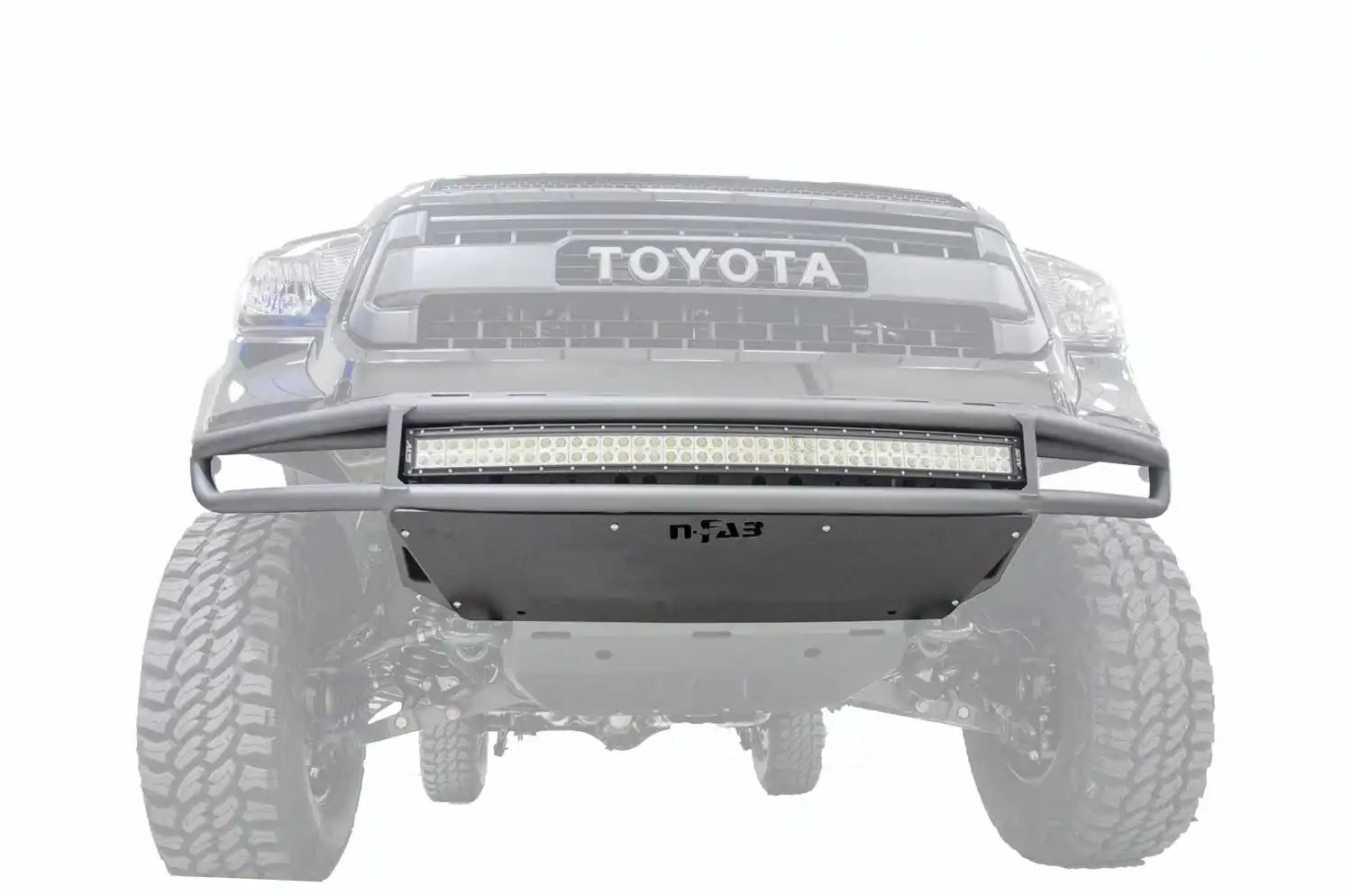 The N-FAB M-RDS Prerunner front bumper follows the line of the front of your truck to create an extremely clean and aggressive pre-runner look. The new Multi-Mount system allows you to mount various combinations of LED lights. This RDS Bumper is a two-part system with bumper aluminum lower skid plate*, available as a complete kit. Each bumper is made in the U.S., with a .095 wall steel tubing and includes a 5-year finish and lifetime craftsmanship warranty.