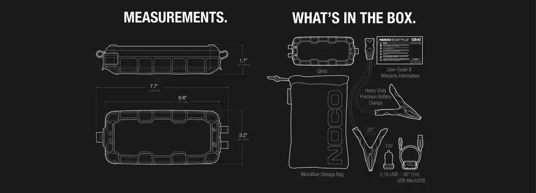 NOCO GB40 Battery Portable Jump Starter Boost Plus 12 Volt Batteries On Cars/ Trucks/ SUVs/ Motorcycles/ ATVs/ UTVs