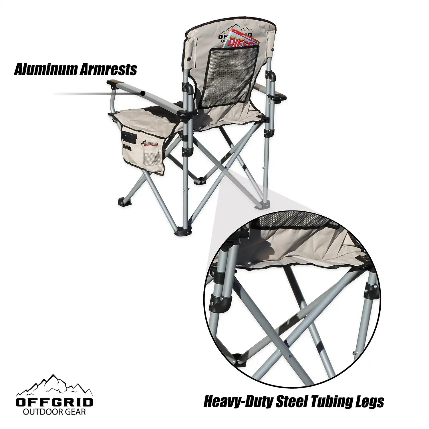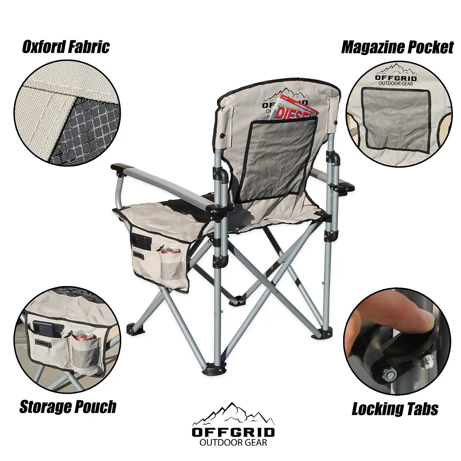 Raptor Series 100000-130200 OFFGRID - Folding Camping Chairs Tan/Black Nylon Heavy Duty XL Locking Chair With Drink Holder