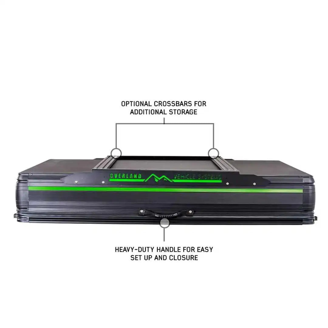 Introducing the Overland Vehicle Systems XD Everest Tents - an unparalleled masterpiece in the world of rooftop camping, designed to elevate your outdoor adventures to new heights. With innovative features and meticulous craftsmanship, the XD (Extreme Duty) Everest Tents are poised to become your ultimate home away from home. Equipped with crossbars so you can carry addition gear on top of the tent. These bars provide the perfect mount for bikes, canoes or any gear you need to transport, ensuring you're well-prepared for your outdoor excursions. With the Overland Vehicle Systems XD Everest Tent, your rooftop becomes a portal to adventure and comfort. Embrace the freedom to explore new horizons, knowing that your dependable shelter is always ready for action. Welcome to a new era of rooftop camping - where convenience, versatility and comfort are all part of the experience.