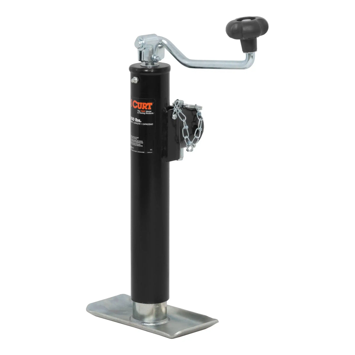 In our goal of being your best source for all things towing, the CURT line of trailer jacks is designed with care and manufactured with pride. CURT jacks are made with quality to promote the life and function of your trailer, and they come in several different styles to accommodate your needs, whether you are a frequenter of the boat landing, the campground, the racetrack or the field. CURT swivel jacks get their name from the pull-pin swivel feature that allows the jack to pivot on its mounting bracket and swing up and out of the way for travel. Our swivel trailer jacks are broken into two categories: pipe mount and bracket mount. This CURT pipe mount swivel jack features a weight capacity of 5,000 lbs. and a travel of 10". With a jack foot plate welded on the bottom, this type of jack also provides added stability for your trailer on rough terrain. It comes with a top-wind handle and includes a weldable pipe with a 9/16" hole for secure mounting. It does not matter what kind of trailer you tow -- a boat trailer, utility trailer, livestock hauler or recreational vehicle trailer -- if you have a receiver-style trailer, you will want a jack that complements its function. For a trailer jack that will not steer you wrong, CURT has the answer.