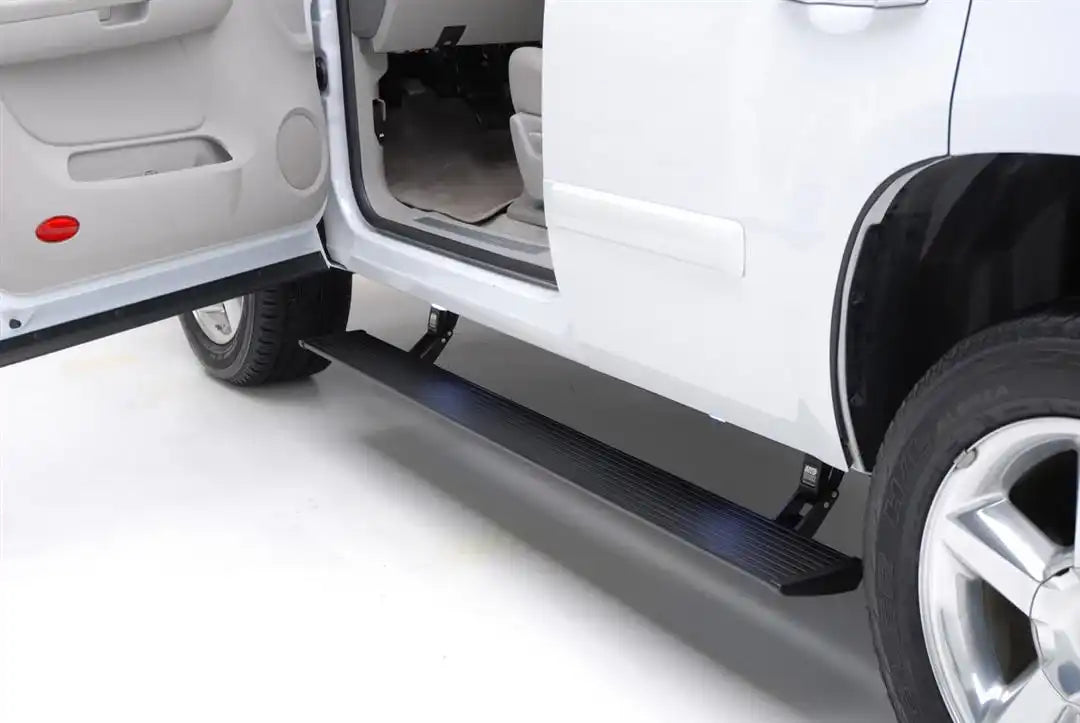 AMP Research invented the PowerStep ™, the automatic, electric-powered running board that instantly extends when you open your door, and retracts out of sight when the doors close for improved ground clearance, aerodynamics and appearance. Its sleek design, all-weather performance and legendary reliability set the industry standard. PowerStep ™ has die-cast aluminum alloy components and precision stainless steel pivot pins for rock-solid stability. The original PowerStep ™ is American designed and engineered. Features all hardware necessary for installation. Product comes with easy to understand vehicle specific installation instructions. Be sure to read and precisely follow the provided instructions when installing PowerStep ™ Power Running Boards.