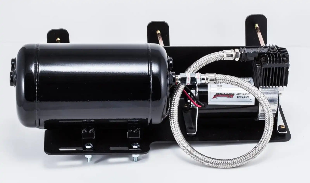 Includes a super-loud, all metal, XCR2.0 Model 101 dual air horn, 120 PSI air system and custom designed mounting brackets that eliminate the drilling, welding or cutting often required for mounting an air horn system on a Jeep. All brackets are made in the USA and bolt onto existing factory locations dramatically reducing installation time. Comes complete with wiring kit, air tubing, push button, all necessary air fittings, mounting hardware and illustrated instructions. Can be used to operate air lockers