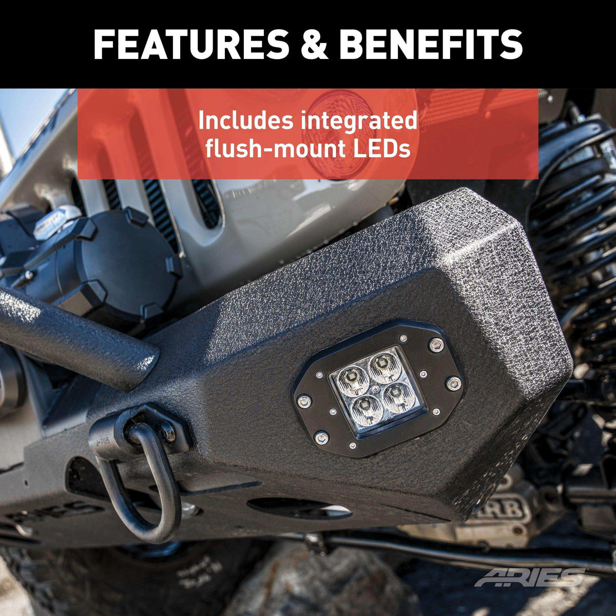 ARIES 2081200 - TrailChaser Jeep Wrangler, Gladiator Steel Front Bumper Corners with LEDs